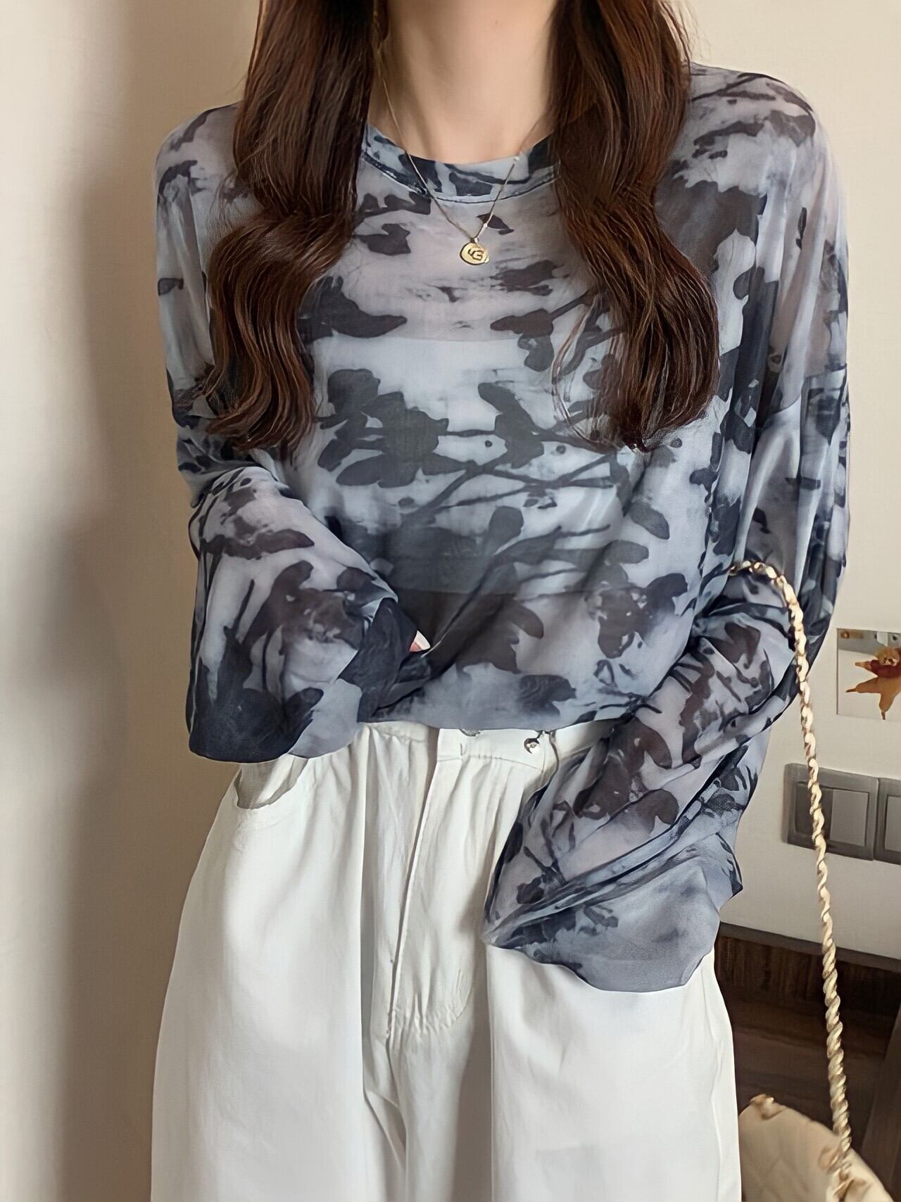 ダダグランデ トップス カットソー シースルー シアー 透け感 オーバーサイズ ビッグシルエット ルーズ 長袖 灰色 グレー オルチャン 参戦服 双子コーデ 韓国ファッション レディース服