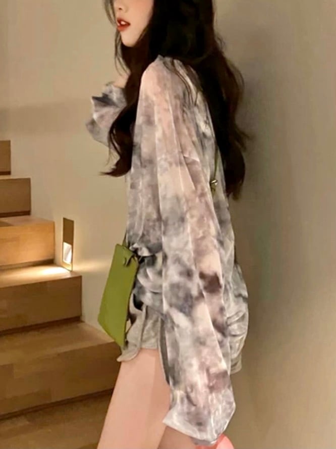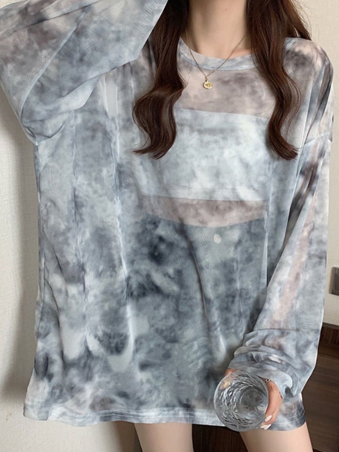 ダダグランデ トップス カットソー シースルー シアー 透け感 オーバーサイズ ビッグシルエット ルーズ 長袖 灰色 ライトグレー オルチャン 参戦服 双子コーデ 韓国ファッション レディース服
