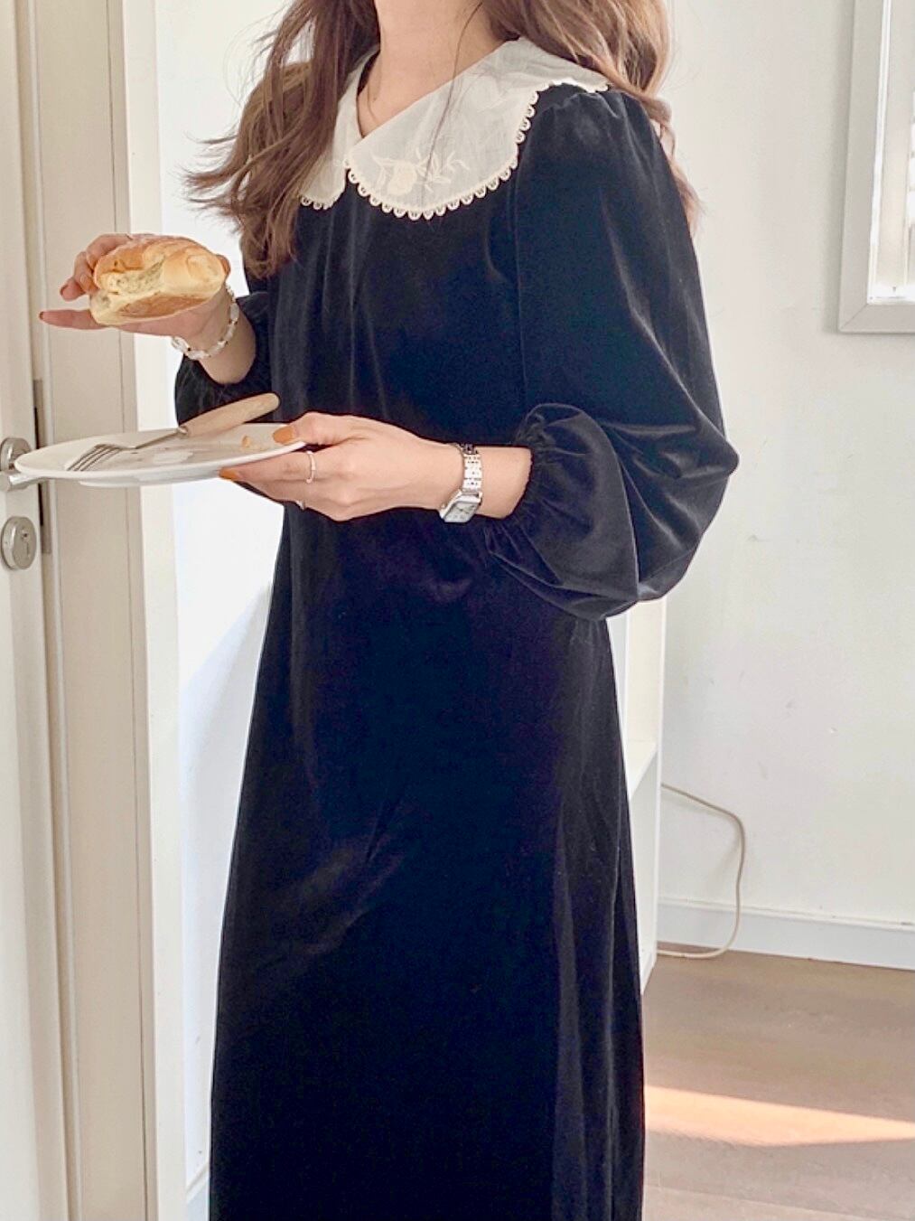 ブラックベルベットロングワンピ