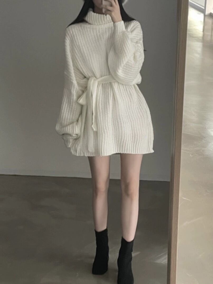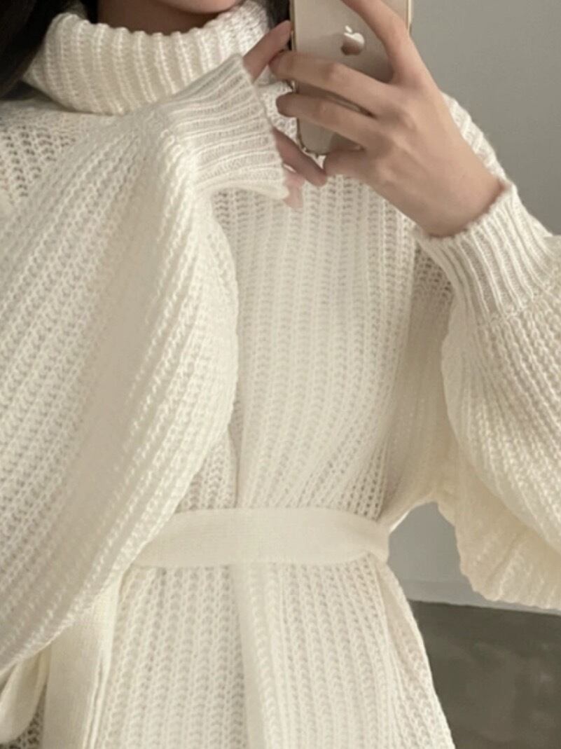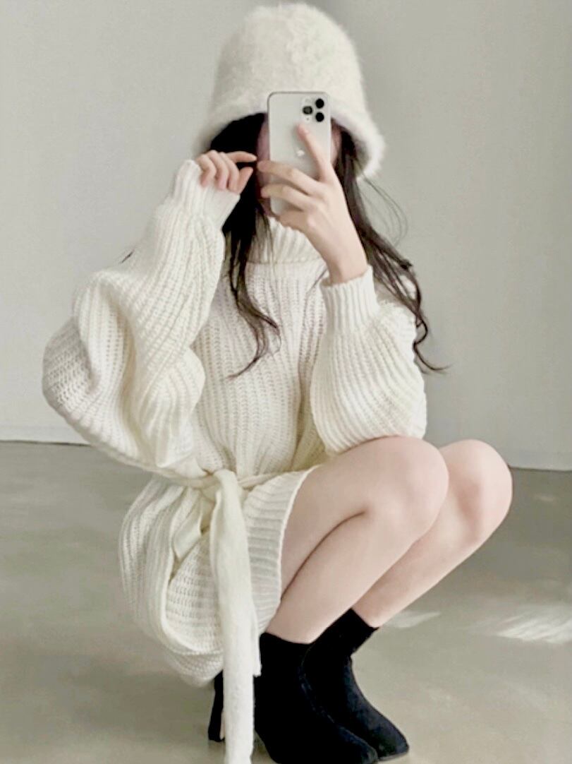【動画アリ・人気】ウエストマークボリュームニットワンピ