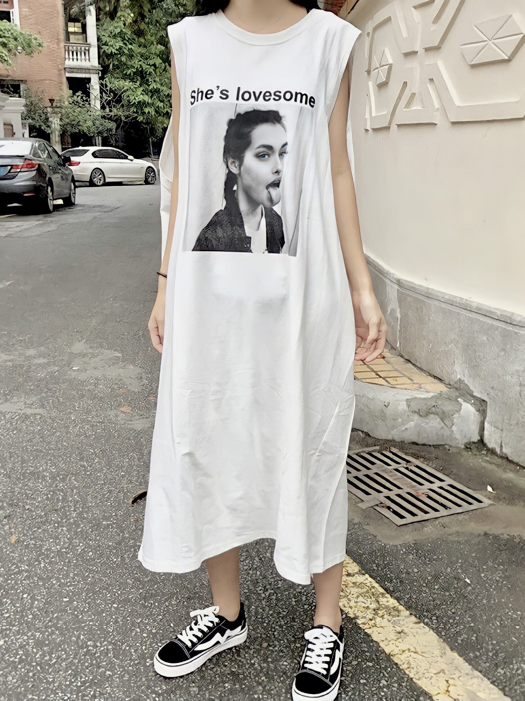 ダダグランデ ワンピース ロングワンピ プリントロゴ ルーズ ビッグシルエット オーバーサイズ 白 ホワイト オルチャン 参戦服 双子コーデ 韓国ファッション レディース服