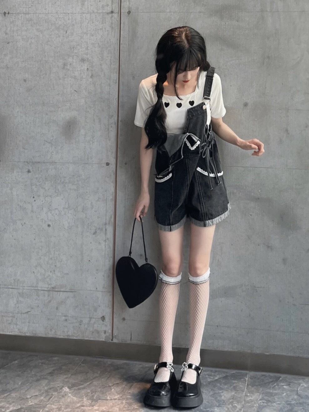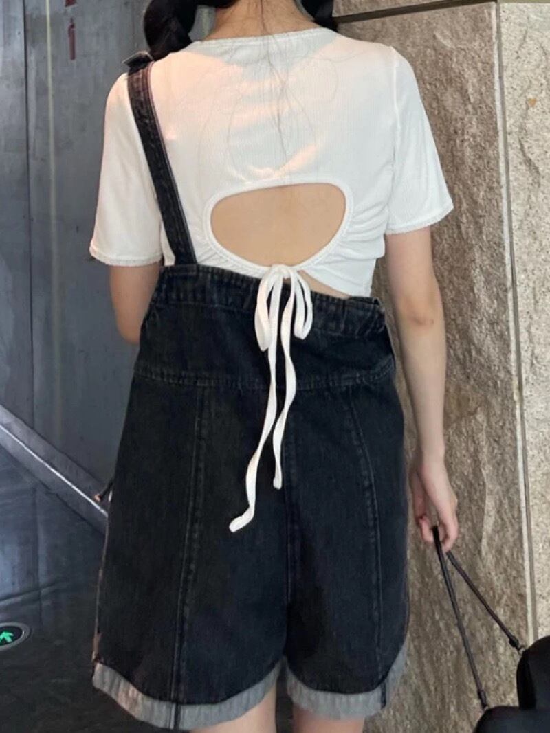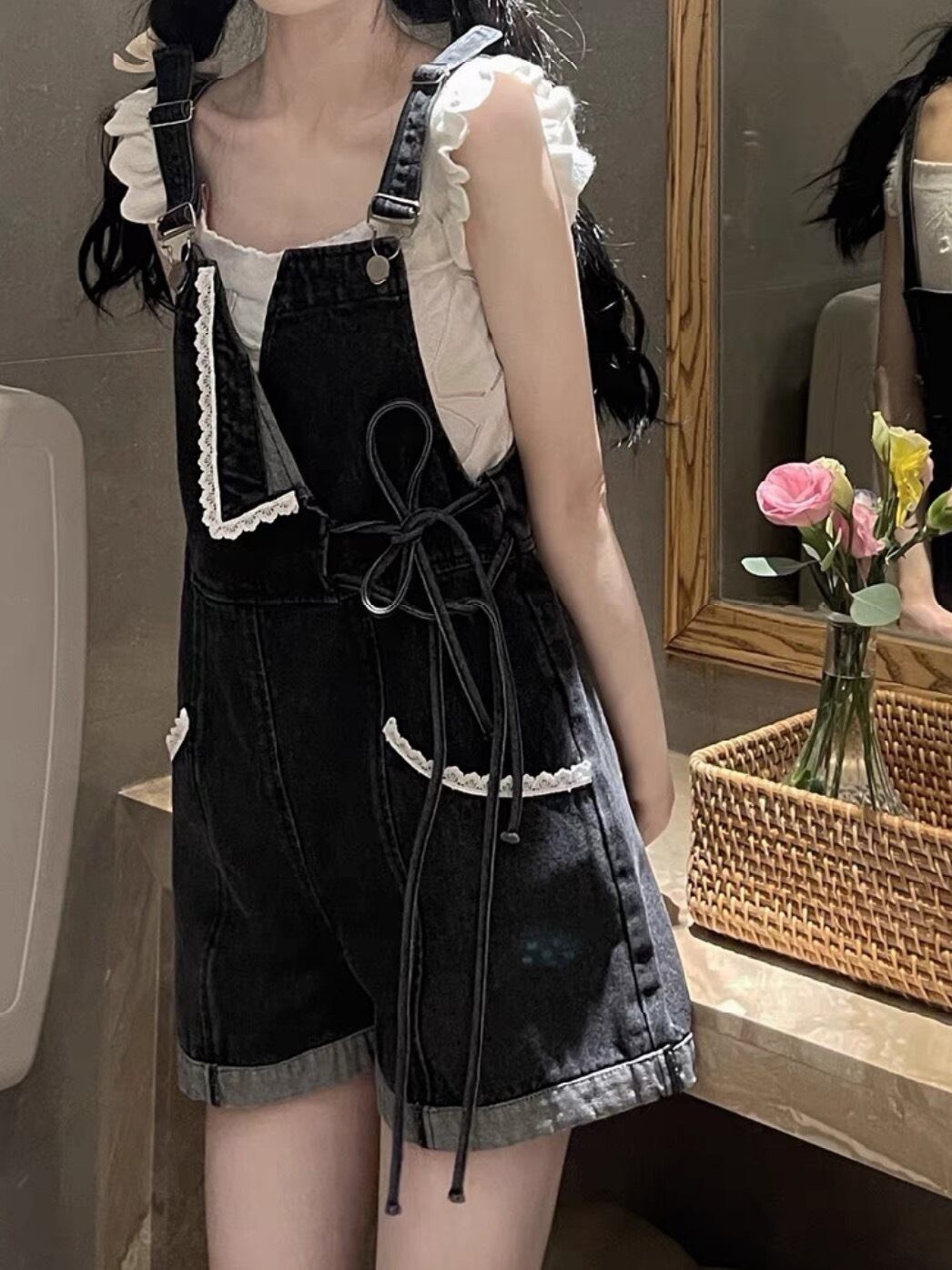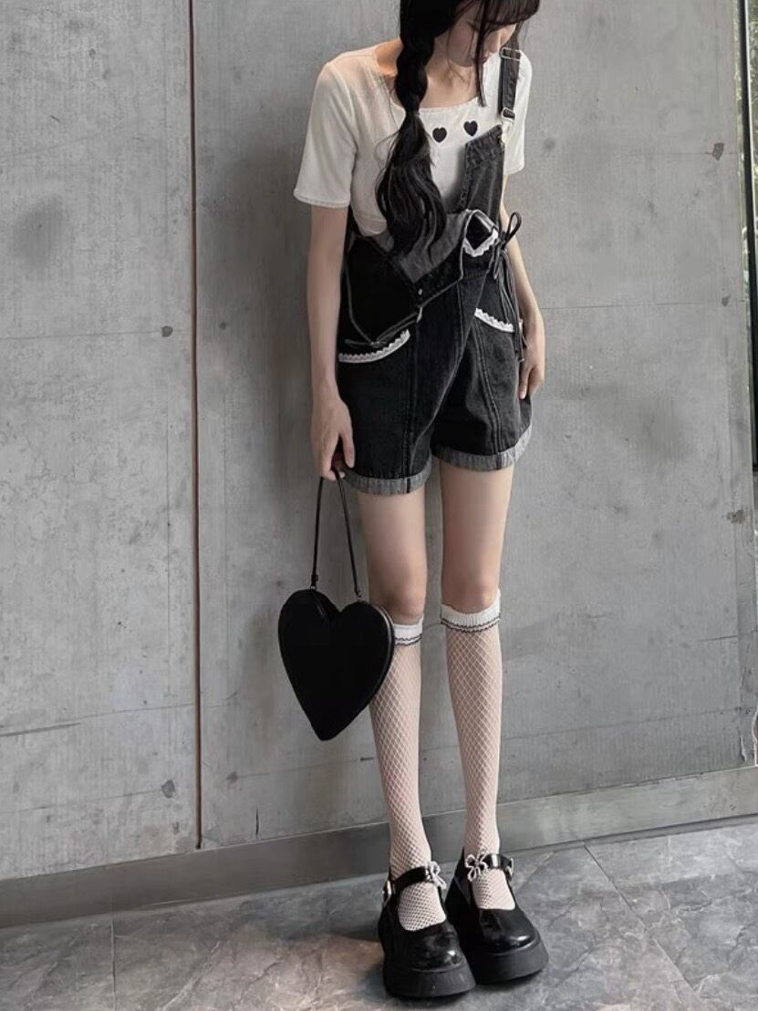 【動画アリ・人気】ラブリーリボンサロペットデニムパンツ