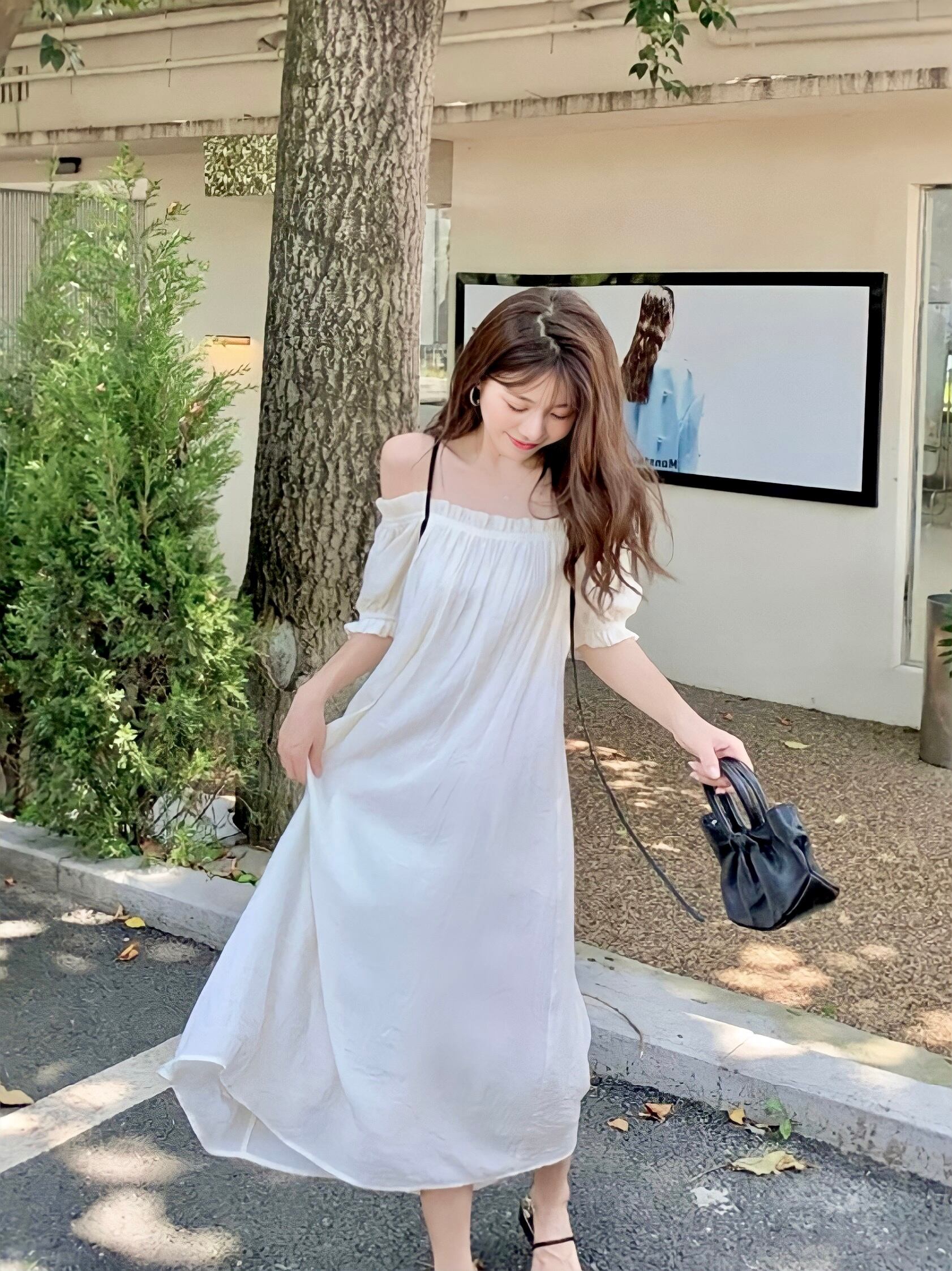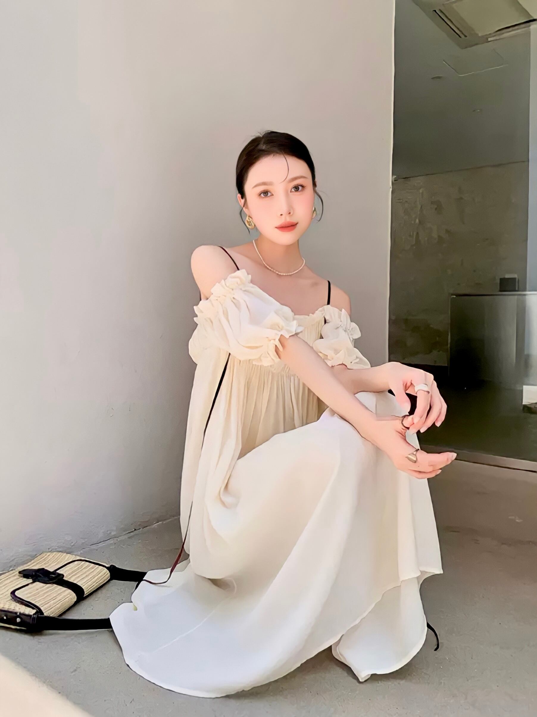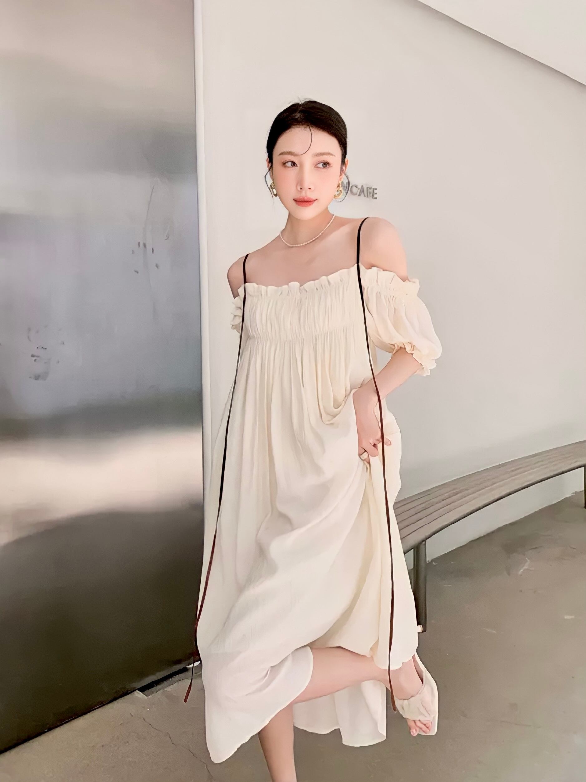 ダダグランデ ワンピース ロングワンピース オフショルダー Aライン ベージュ アイボリー フェミニン おパリ おパリ女子 オルチャン 参戦服 双子コーデ 韓国ファッション レディース服
